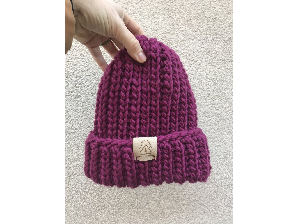 Ručně háčkovaná čepice ze 100% vlny v krásném odstínu fialové ostružiny. Hřejivá, prodyšná a stylová – ideální pro město i hory.