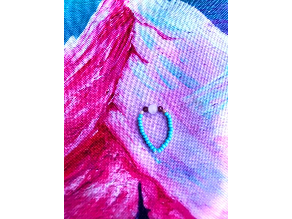 „Luna v srdci“ je něžný, ale výrazný prstýnek navlečený na pružném materiálu, takže se snadno přizpůsobí většině velikostí prstů. Kombinace tyrkysového rokajlu, rubínů a měsíčního kamene vytváří harmonii energie, krásy a klidu.