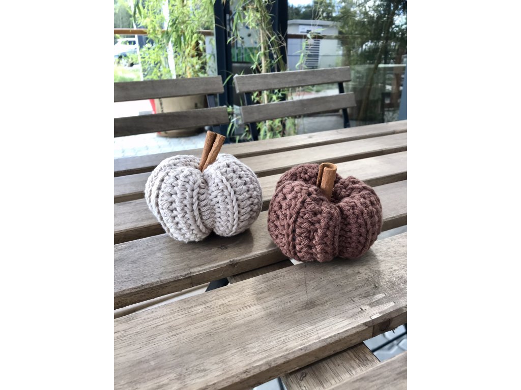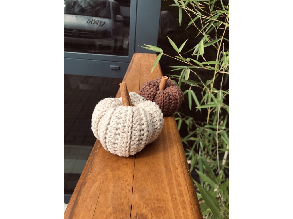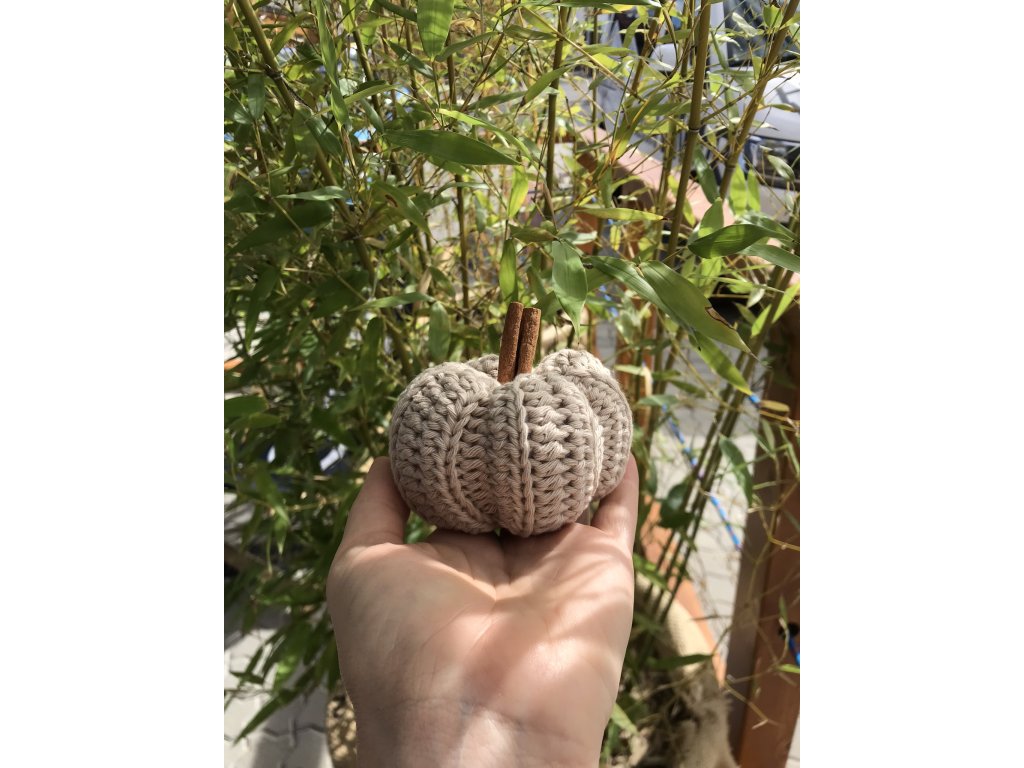 Ozdobte svůj domov touto jedinečnou ručně háčkovanou dýní, vyrobenou ze zbytků bavlny a s přírodní skořicovou stopkou. Ideální jako podzimní dekorace.